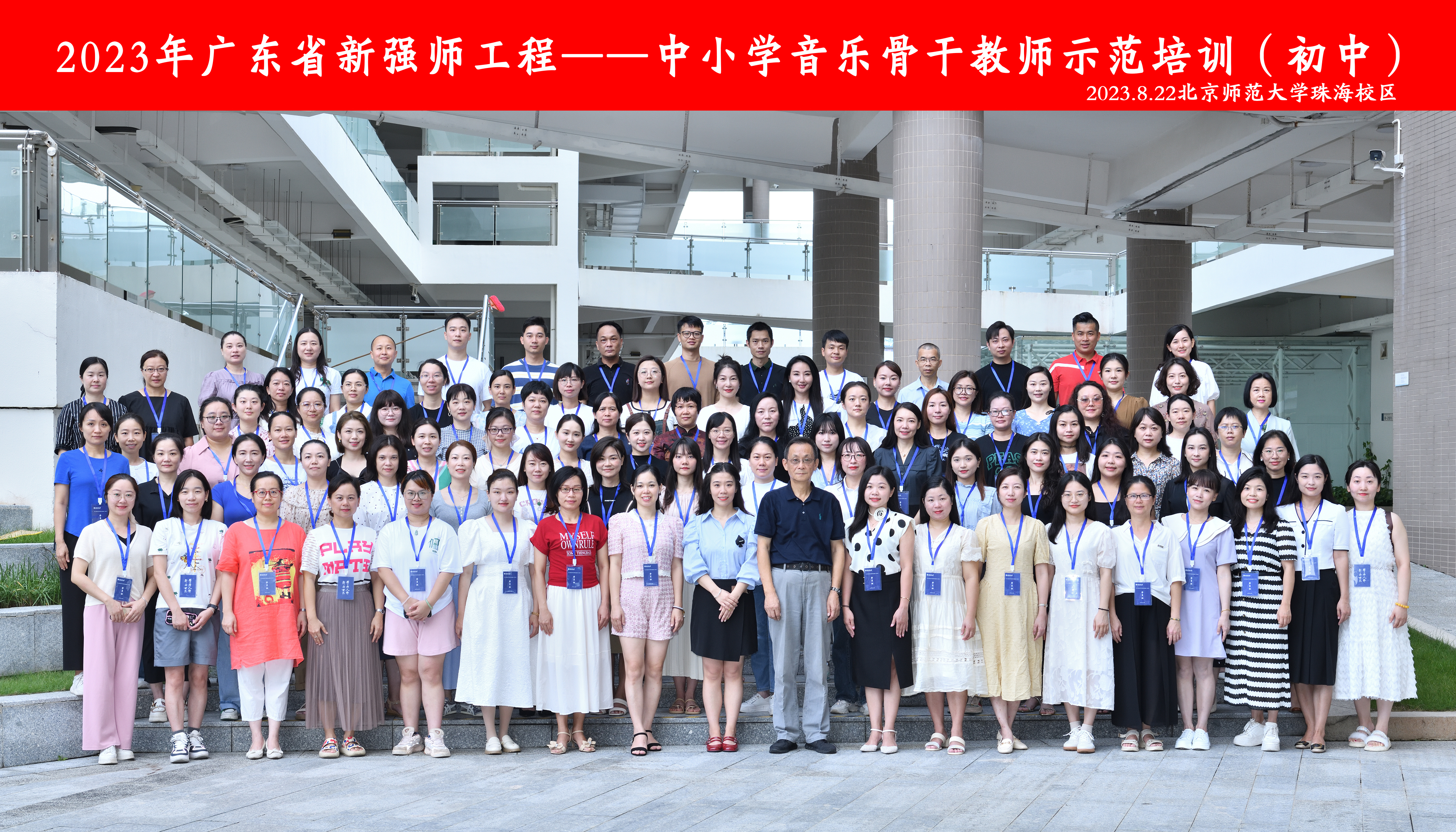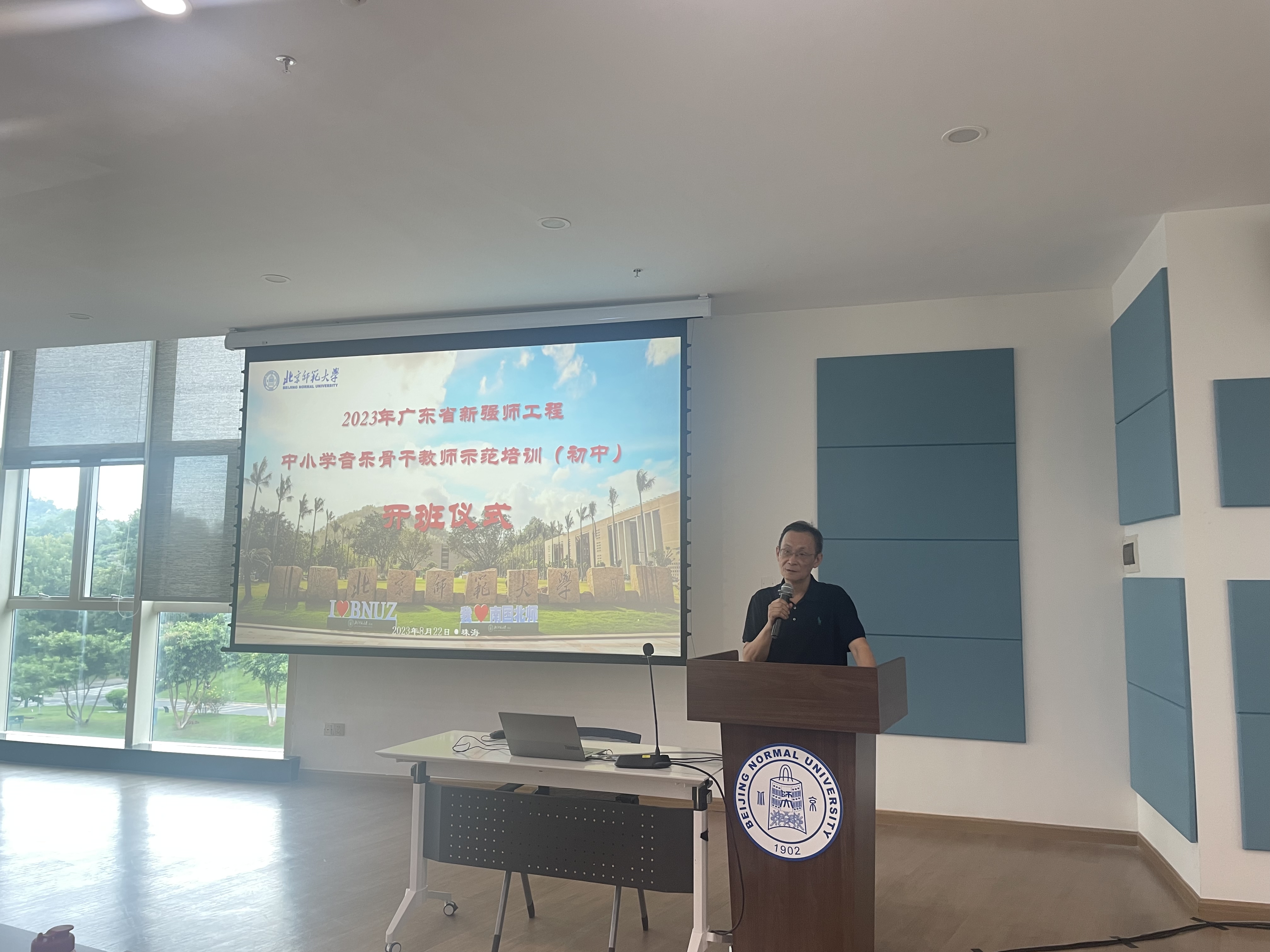 8月22日上午,2023年广东省新强师工程——中小学音乐骨干教师示范培训(初中)开班仪式在北京师范大学珠海校区顺利举行。北京师范大学继续教育与教师培训学院顾问吴圣谷以及来自广东省各地市的90余位初中音乐骨干教师出席开班仪式。