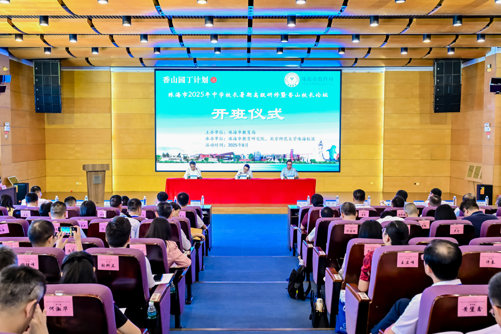 8月22日,“香山园丁计划”——珠海市2025年中学校长暑期高级研修暨香山校长论坛开班仪式在北京师范大学珠海校区隆重举行。珠海市委常委、宣传部部长徐剑,珠海市委教育工委书记、市教育局党组书记、局长习恩民,北京师范大学珠海校区管委会副主任、秘书长戴伟,珠海校区党委副书记孔毅,副教务长刘日升,文理学院副院长马晓伟,以及珠海市高中校级领导,各区校级领导代表,市、区教育行政部门主要负责人及行政干部代表等240余人共同参加。
