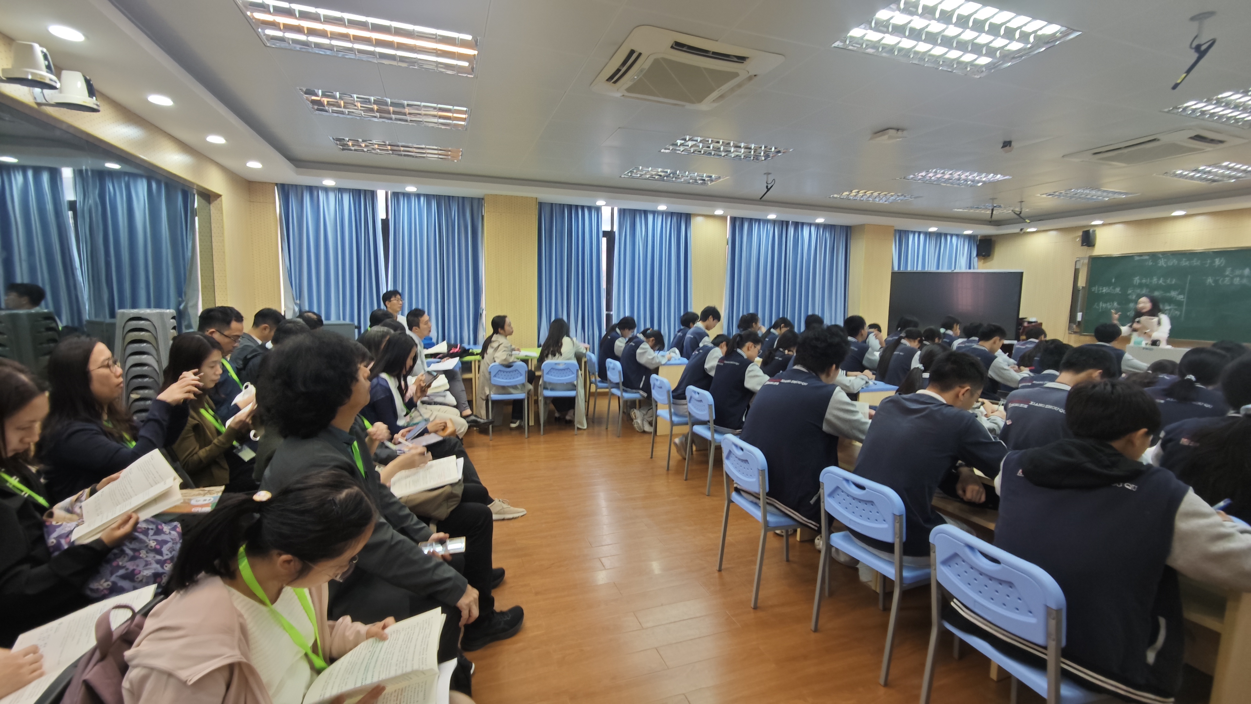 学习团中学组深入珠海市九洲中学开展实地参访。九洲中学姜楠书记以《五育融合,求真育人》为题作专题分享,介绍了学校“求真”文化内涵,在德智体美劳五育融合方面的创新实践与特色课程。随后,教师们分组观摩了生物《性状遗传的物质基础》、数学《单项式》、语文《我的叔叔于勒》三堂常态课,近距离感受内地的课堂形态。课后的评课交流中,两地教师展开深度研讨。