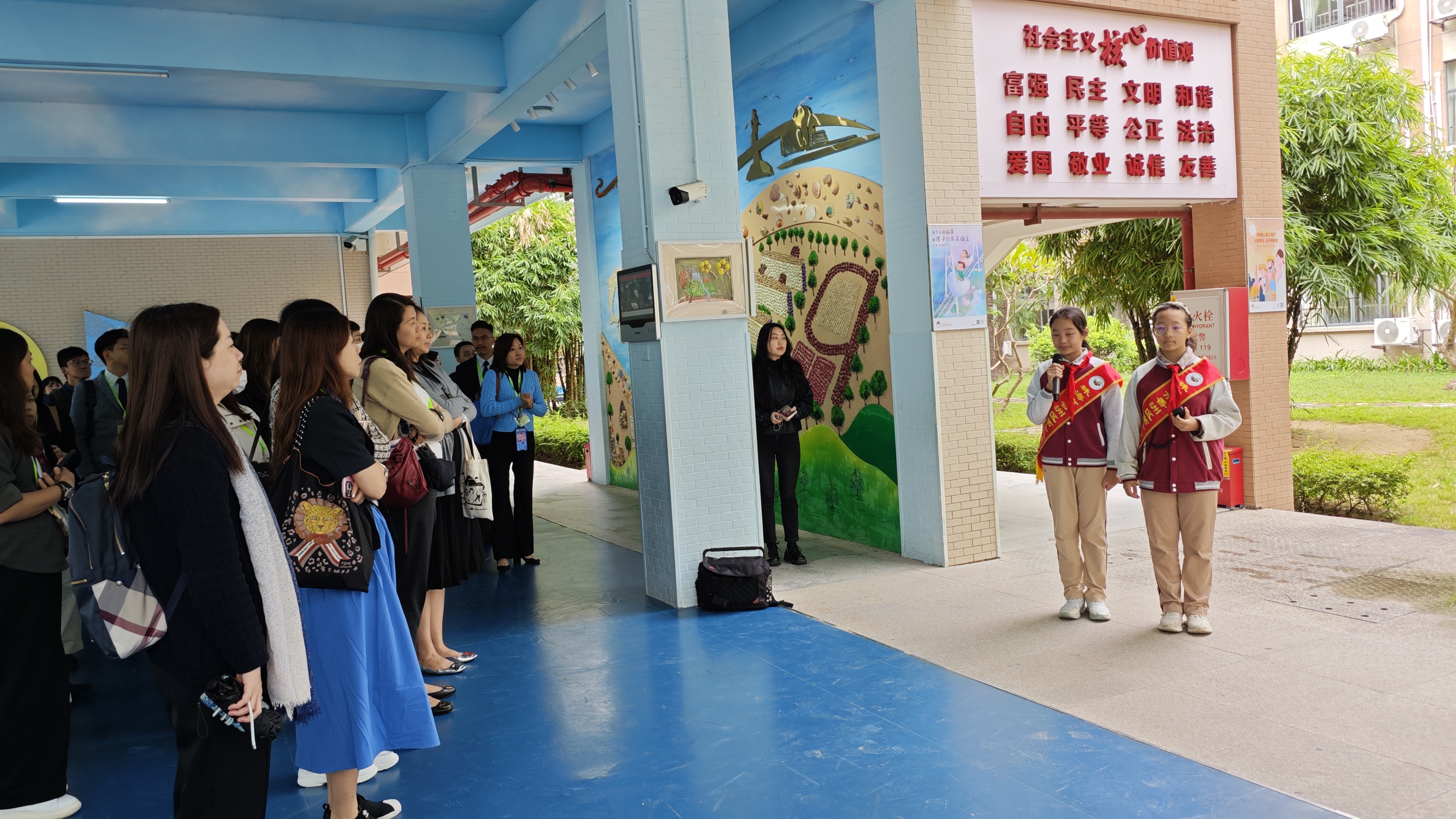 学习团小学组深入珠海市香洲区第十八小学开展实地参访。校园内,红领巾讲解员们化身“文化小使者”,以饱满热情细致介绍学校特色育人实践,分享了学校“让每个孩子都精彩”的办学理念与“方寸海纳,知行合一”的校训精神。随后,教师们观摩了两堂AI技术与课程深度融合的创新课堂——心理健康课《谁破坏了友情》及科学课《地球的表面》。在交流环节,香港教师们结合自身教学经验,提出相关疑问,现场研讨氛围浓厚。