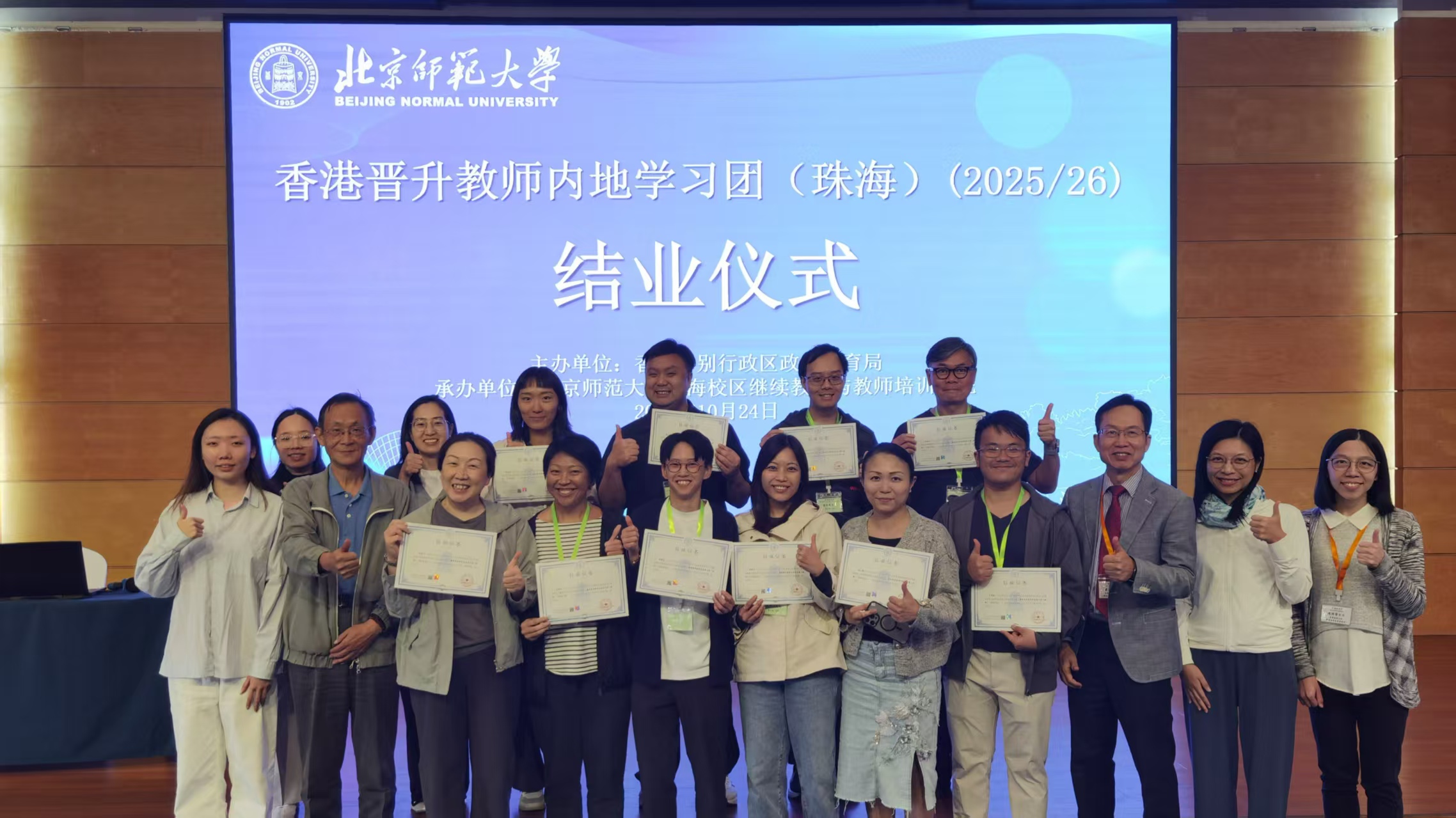 2025年10月21日至24日,由香港特别行政区政府教育局主办、北京师范大学珠海校区继续教育与教师培训学院承办的香港晋升教师学习团(珠海)(2025/26)在珠海开展为期四天的深度研修活动。本次活动通过专业理论研修、内地学校参访、科技企业探秘与历史文化考察等多元形式,助力120位香港中小学晋升教师夯实教育创新能力,深化国家文化认知。