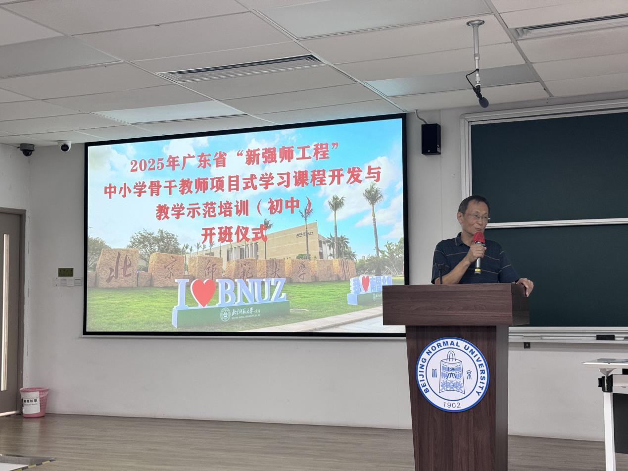 10月14日上午,由北京师范大学广东省中小学教师发展中心承办的2025年广东省“新强师工程”中小学骨干教师项目式学习课程开发与教学示范培训(初中)在北京师范大学珠海校区顺利开班。来自全省各地市的97名初中骨干教师参加本次培训。