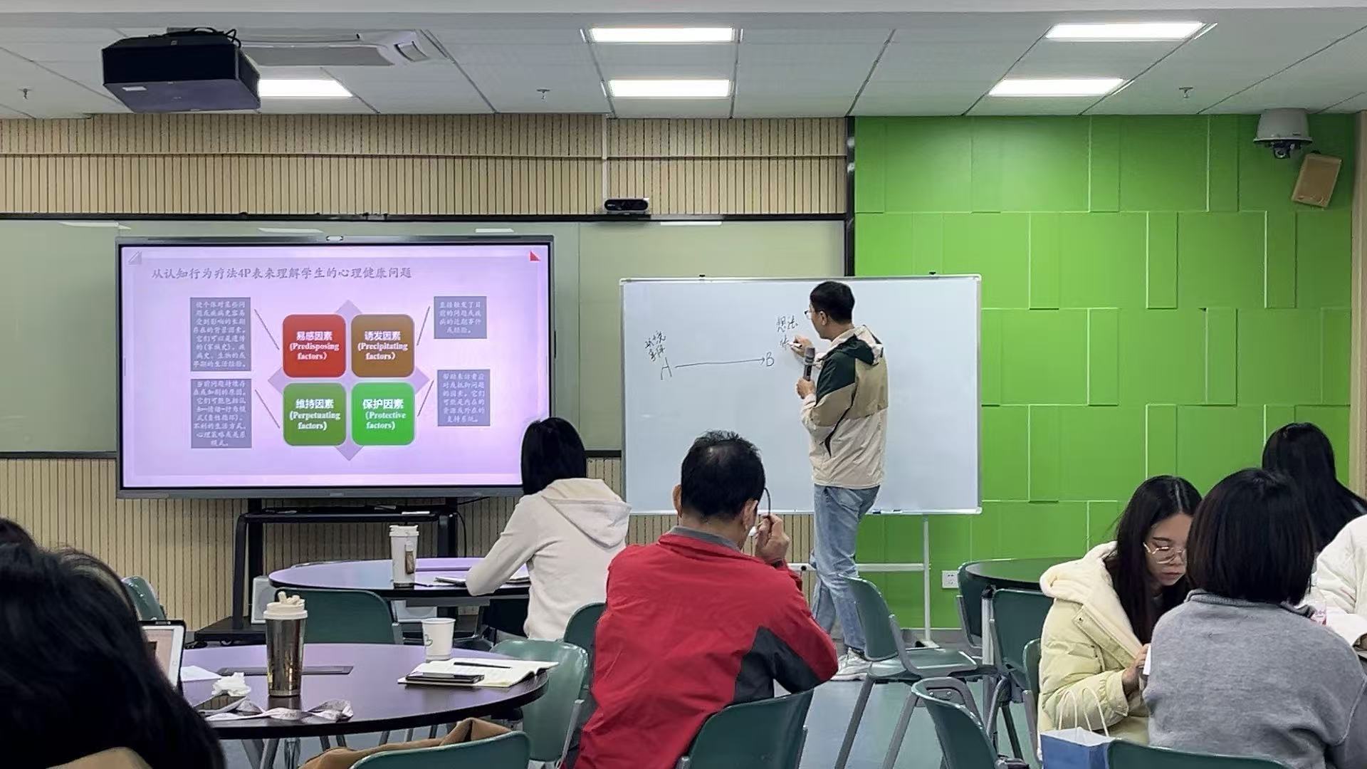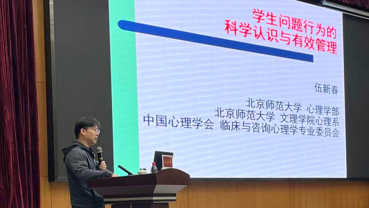 北京师范大学伍新春教授开展了“学生问题行为的科学认识与有效管理”专题讲座,从行为功能分析的底层逻辑出发,引导教师科学解读行为、制定系统干预策略。郭思慧、杨雪岭、宋潮三位专家围绕真实案例,组织学员开展深度团体督导,助力学员实现从“单一应对”到“系统支持”的角色转变。