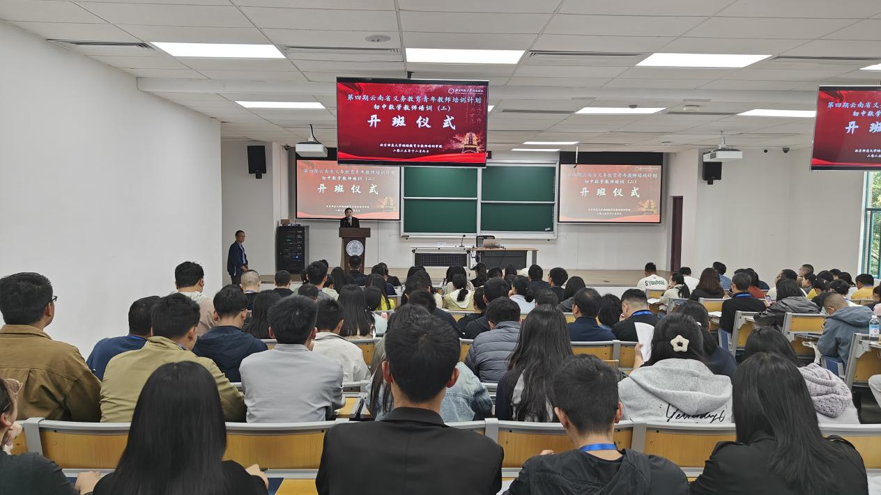 北京师范大学珠海校区继续教育与教师培训学院吴圣谷老师出席本次开班仪式。他强调,北师大始终秉持"学为人师,行为世范"的校训精神,致力于为基层教师搭建专业成长平台。并详细阐述了本次培训的三大意义:一是帮助青年教师掌握核心素养导向的数学教学新理念;二是促进中西部教育优质资源共享;三是为云南基础教育高质量发展储备骨干力量。他特别提到,本次培训整合了北师大数学学科百年积淀与珠三角地区先进教学经验,设计了"理论+实践"的立体化课程体系。最后,吴老师对参训教师提出三点期望:第一要珍惜学习机会,主动与专家对话;第二要注重转化应用,将先进经验本土化;第三要加强跨区域教研协作,发挥"种子教师"的辐射作用。