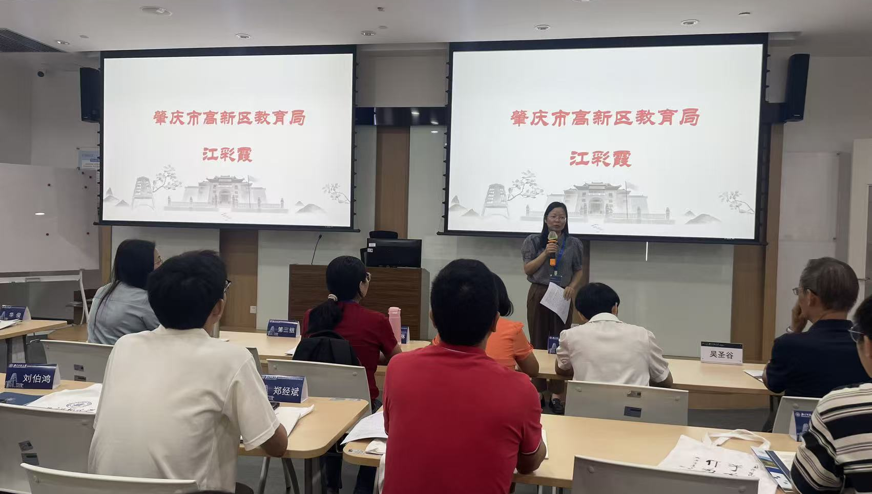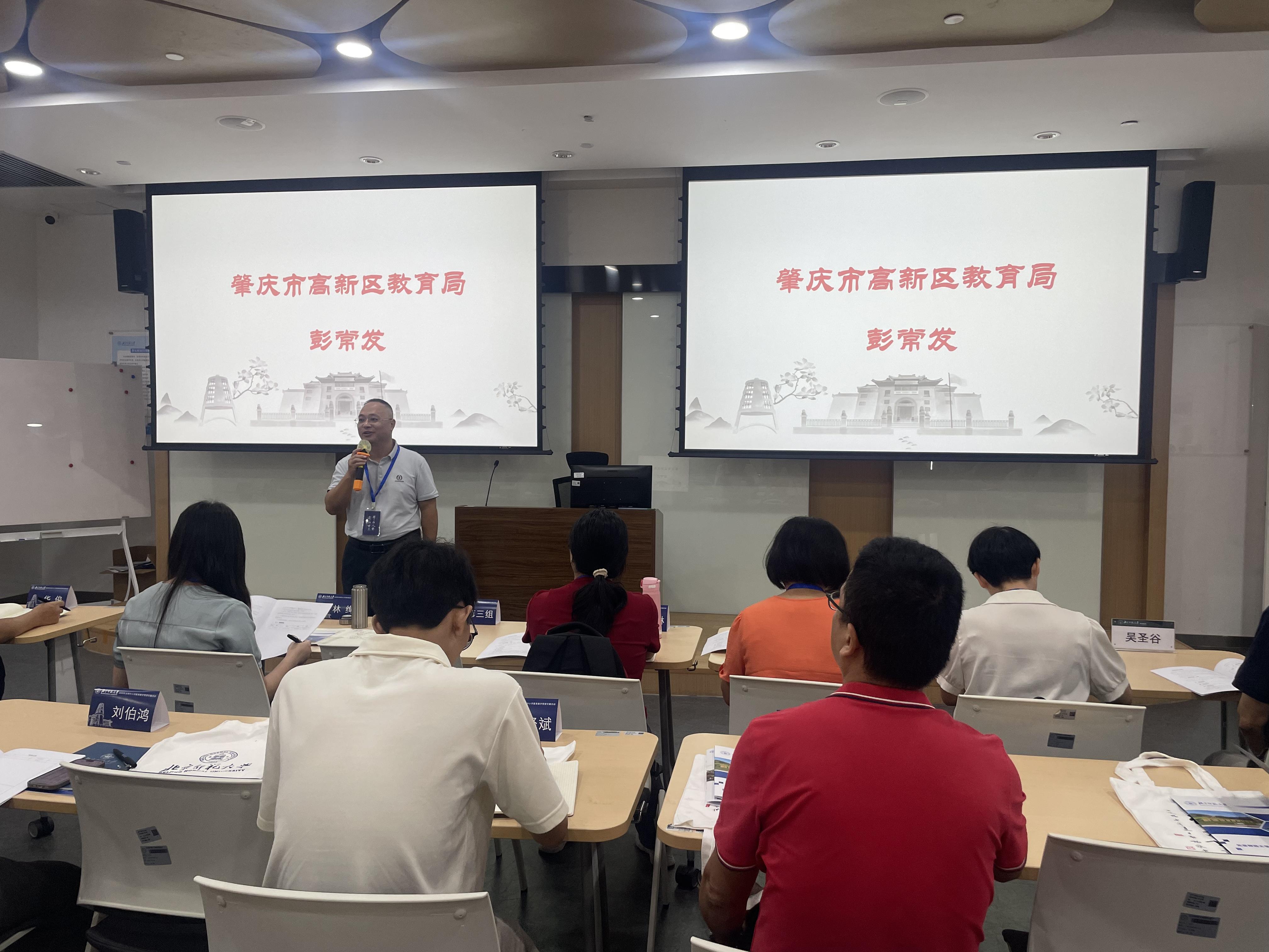 吴圣谷老师首先向肇庆市高新区教师代表表示热烈欢迎,他从三大维度向大家介绍北京师范大学:一是回溯校区发展历程,从办学初心到逐步成为区域教育标杆的进阶之路;二是详解师资与学生规模——依托北师大本部优质资源,校区汇聚了一批教育领域顶尖学者,在读学生涵盖基础教育相关多个专业,形成“教、学、研”一体化培养体系;三是阐释校区影响力,作为南方基础教育创新研究的重要阵地,其输出的教育理念与实践成果已辐射全国多个省市。