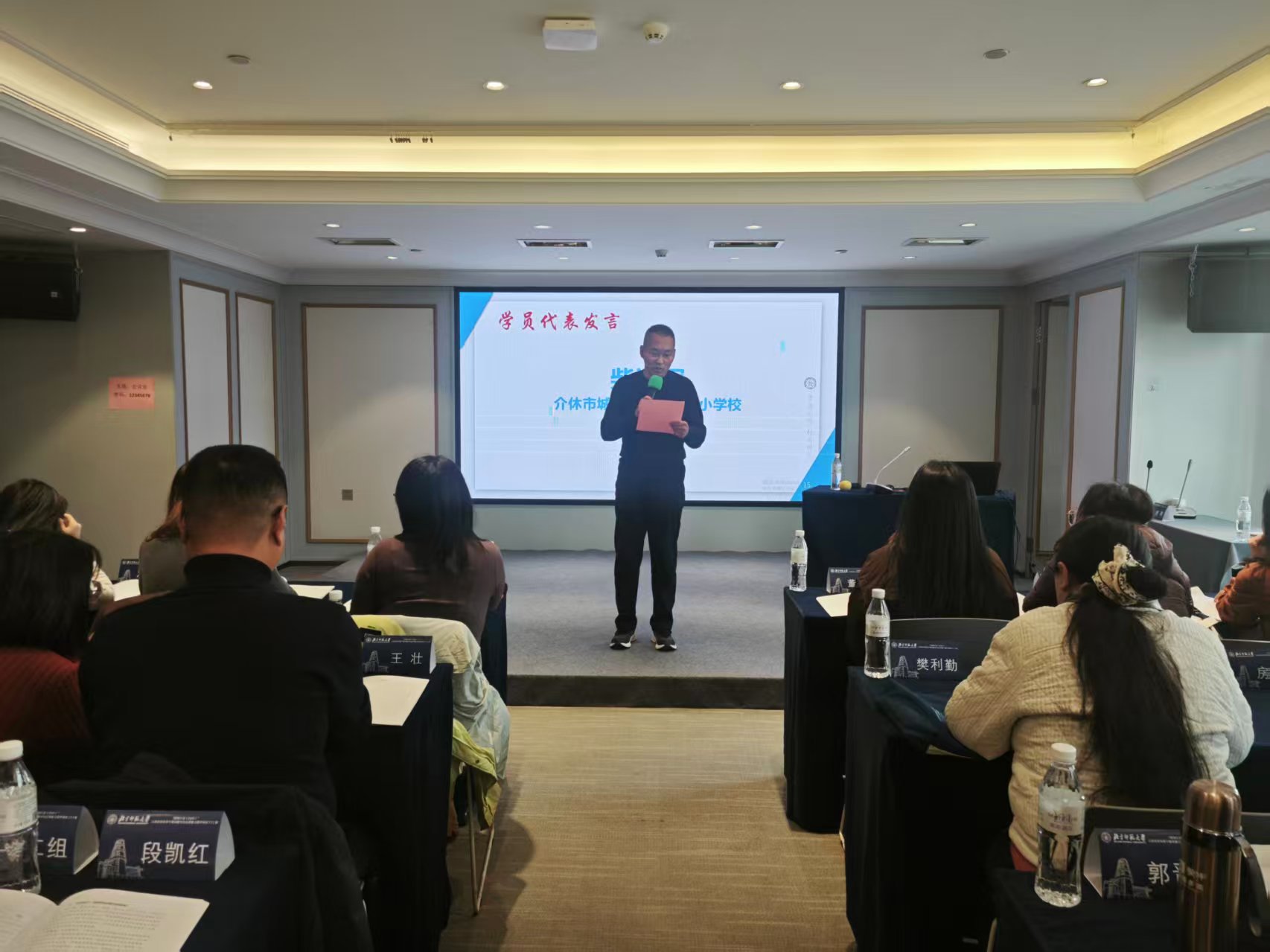 学员代表发言环节,来自介休市城关乡罗王庄村小学校的柴海军老师表示,面对教育数字化的深入推进,身处一线的教师迫切需要更兼具实用性和可操作性的数字化应用指导。本次培训内容紧贴学科教学实际,回应了教师在课堂应用、学情分析和教学评价等方面的现实需求。他承诺并号召全体学员珍惜此次学习机会,主动参与研修与交流,把所学所思转化为教学实践,不断提升自身数字化应用能力,助力学科教学提质增效。