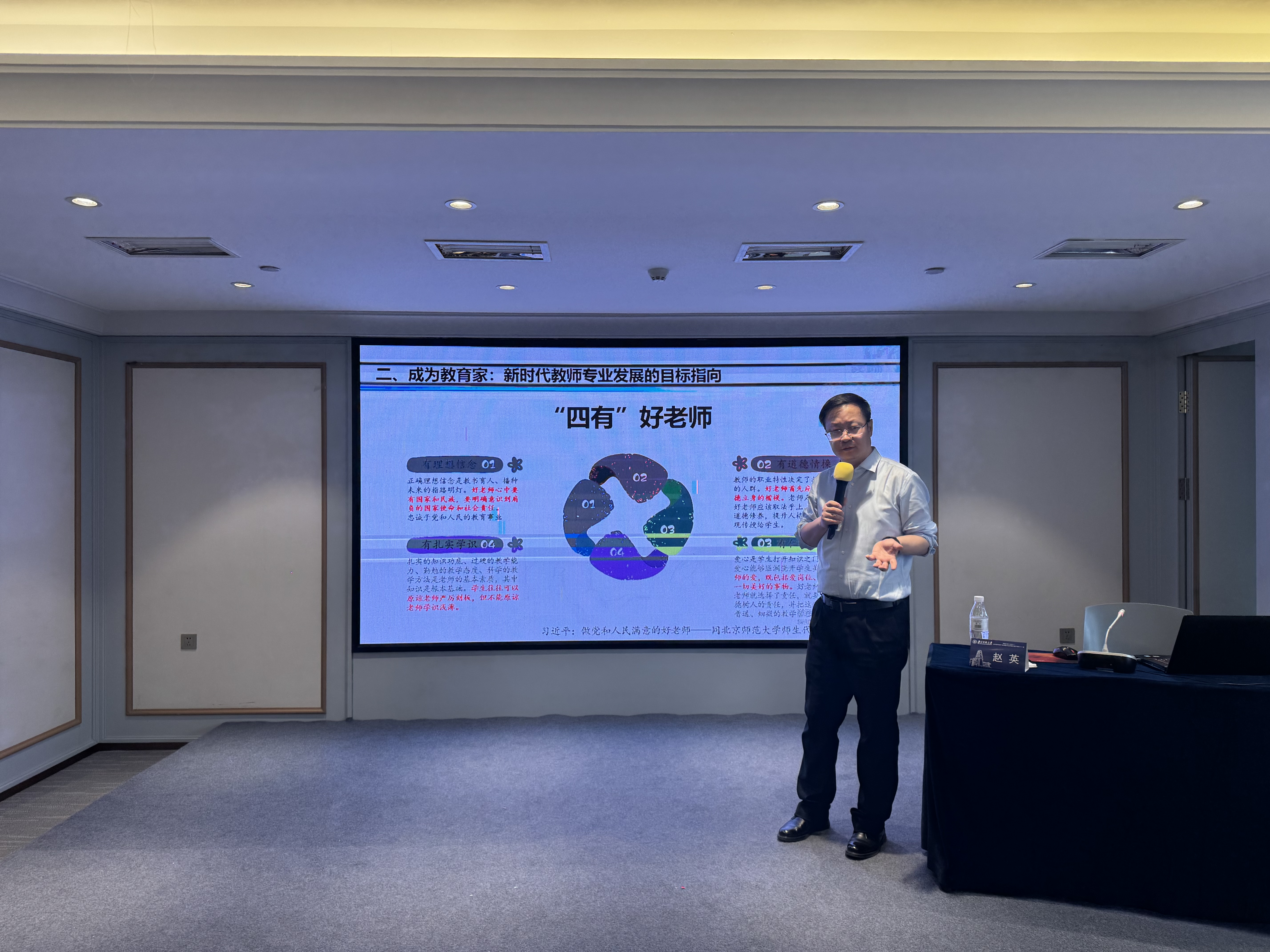 开班仪式后,山西师范大学教育科学学院院长赵英为参训学员带来了题为《教育家精神引领下的教师专业发展》的讲座。赵院长立足新时代教师队伍建设要求,系统阐释了教育家精神的时代内涵与现实价值,深入分析了教育家精神对教师专业成长的引领作用。他结合教师职业发展实际,指出教师应在坚守初心中不断提升专业素养,在实践反思中实现自我发展,引导学员进一步明确新时代背景下教师专业成长的方向与路径。