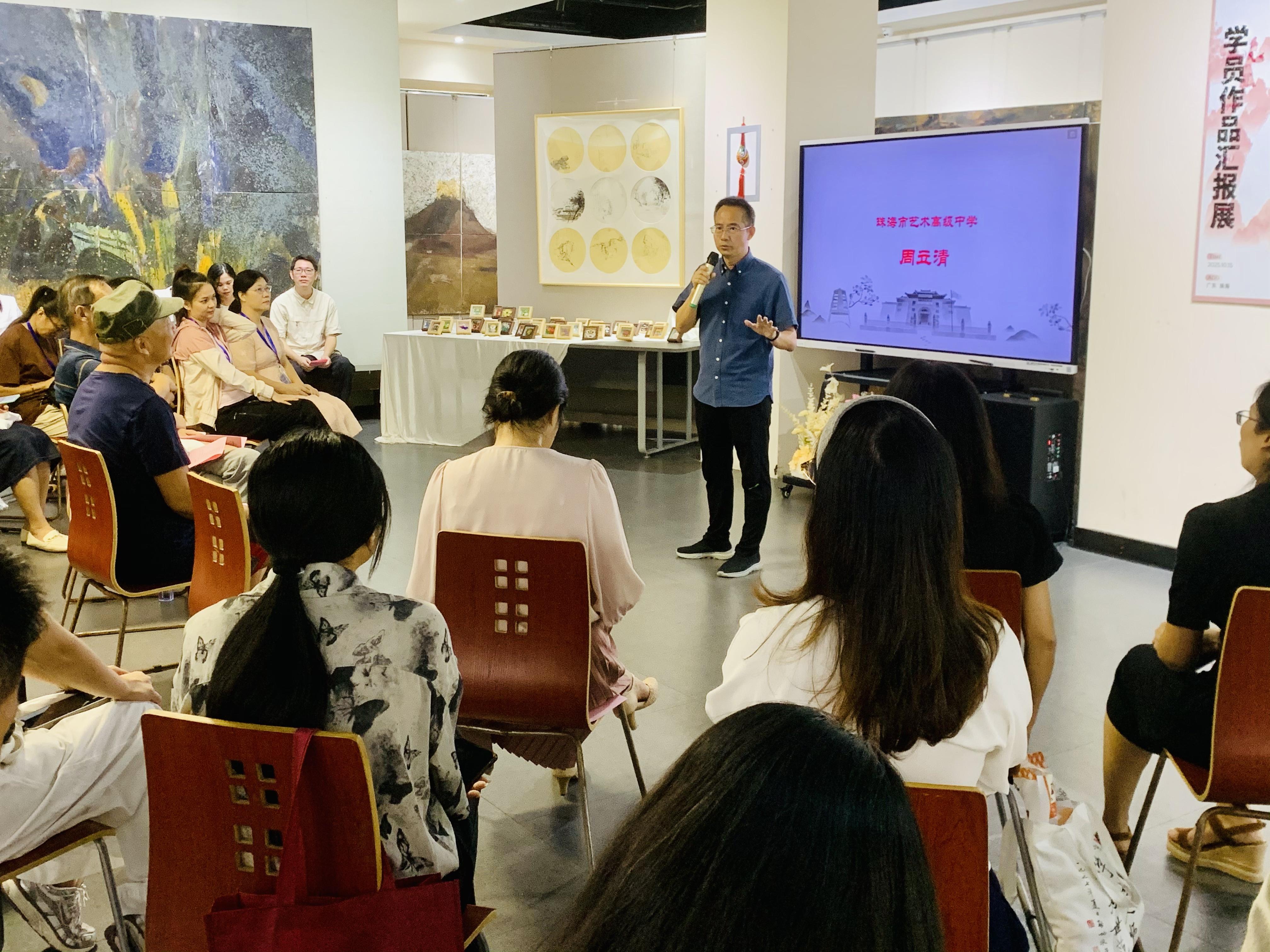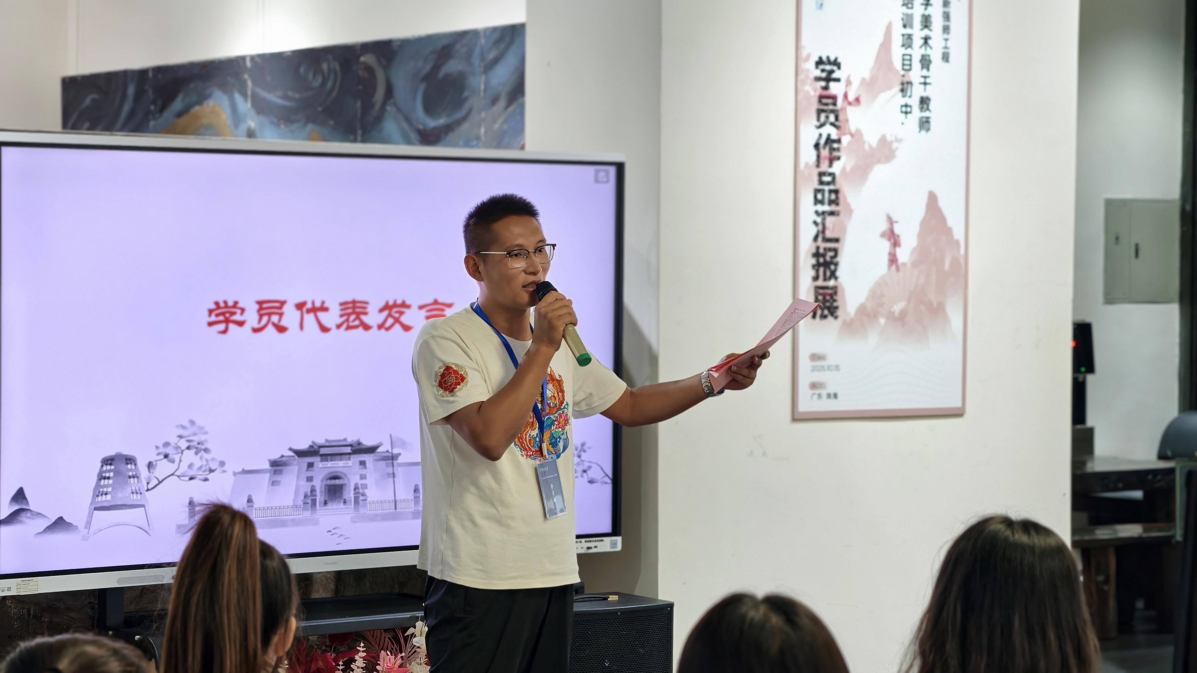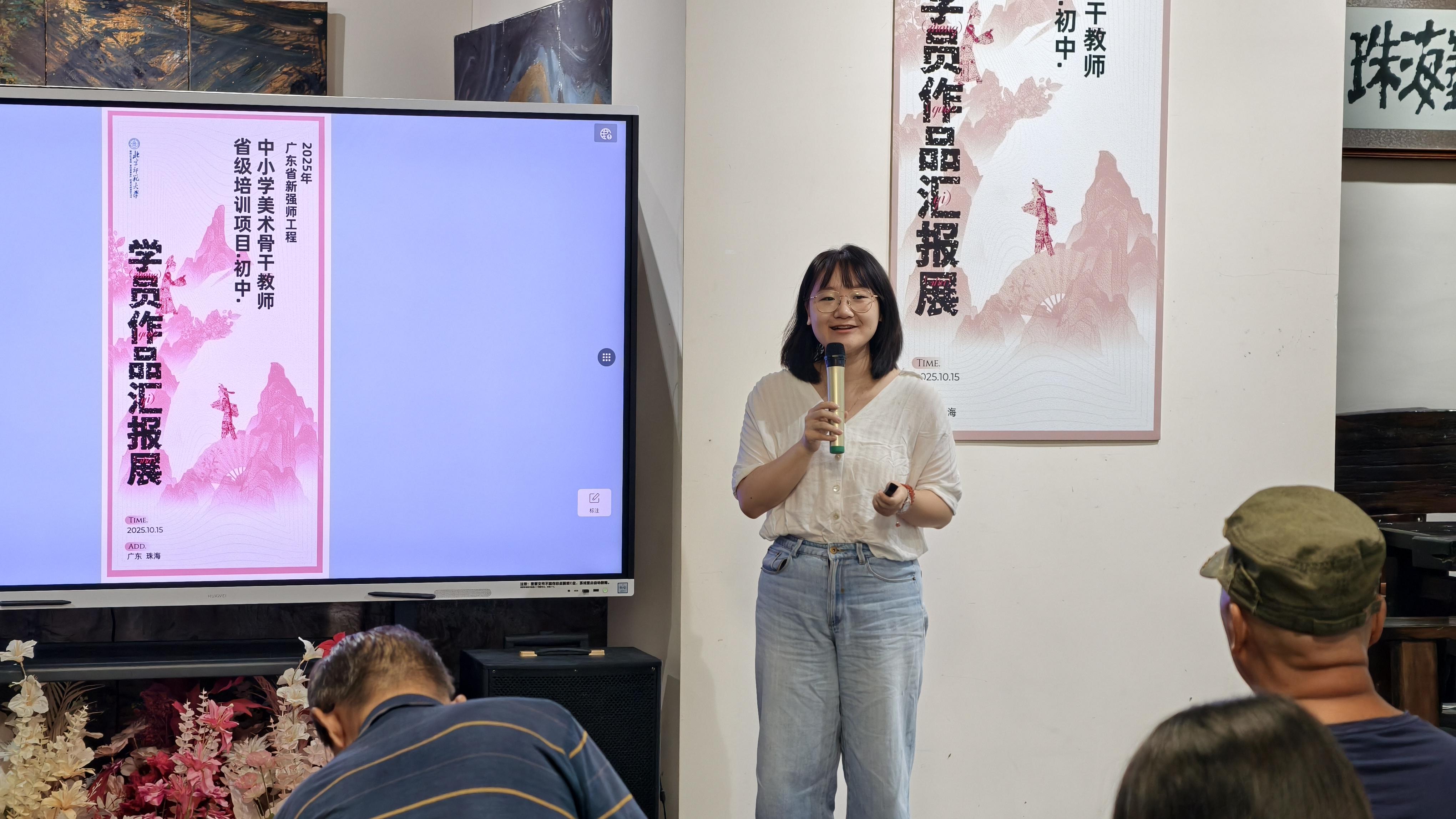 在珠海市艺术高级中学周立清校长《迎宾曲》的悠扬旋律中,2025年广东省新强师工程——中小学美术骨干教师省级培训(初中)学员作品汇报展暨结业仪式正式拉开帷幕。主持人廖世鹏、刘家玲老师以专业与热情,为这场美育盛会定下基调。