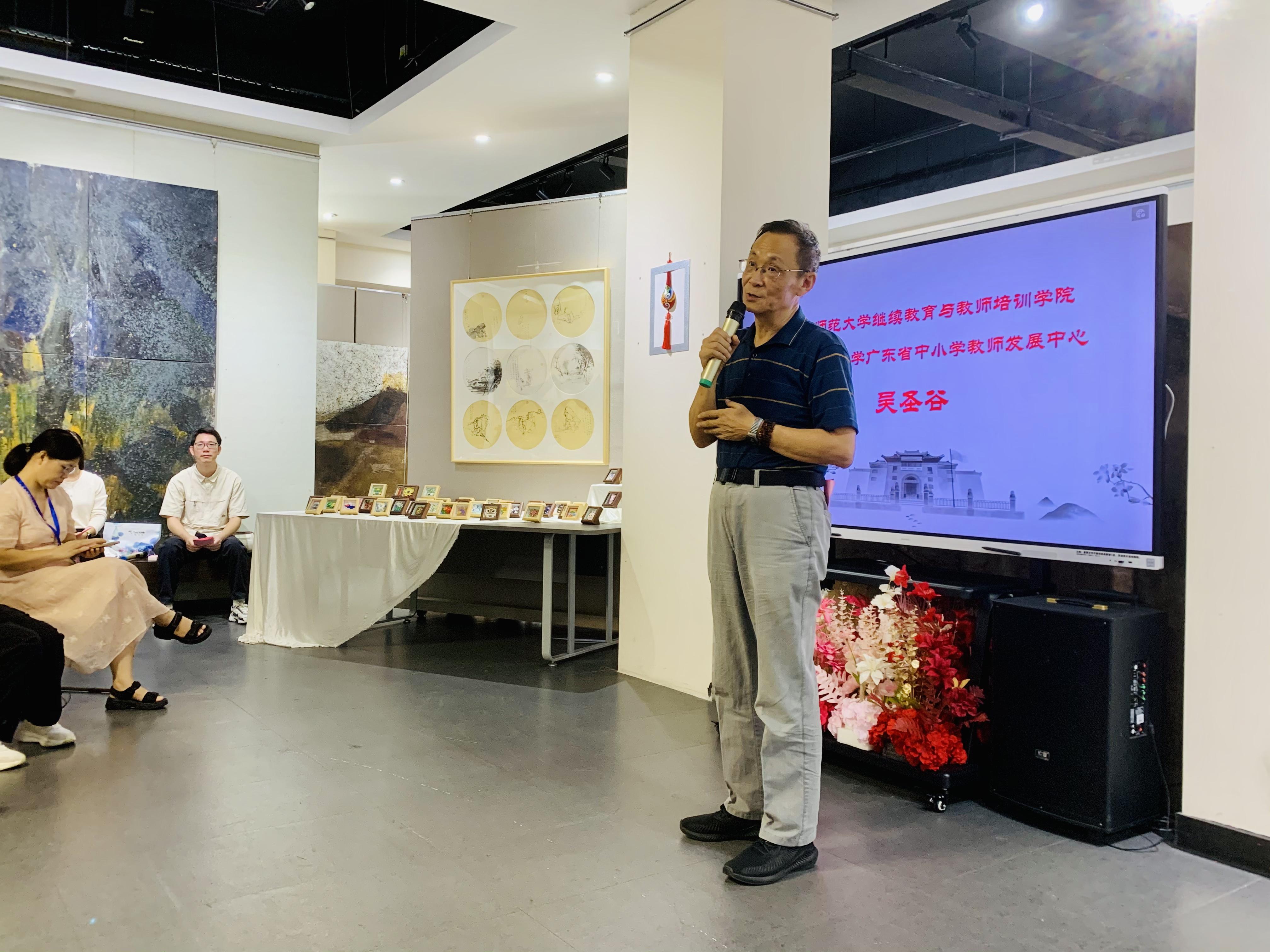 北京师范大学广东省中小学教师发展中心顾问吴圣谷说:“这是一场以美育为犁的深耕,我们见证了南粤美术教师从理论到实践的蜕变,从个体到共生的成长。今天,这些凝结着智慧与热忱的作品,正是研修成果最生动的注脚。”并宣布广东省强师工程中小学美术骨干教师省级培训项目(初中)学员作品汇报展开幕。